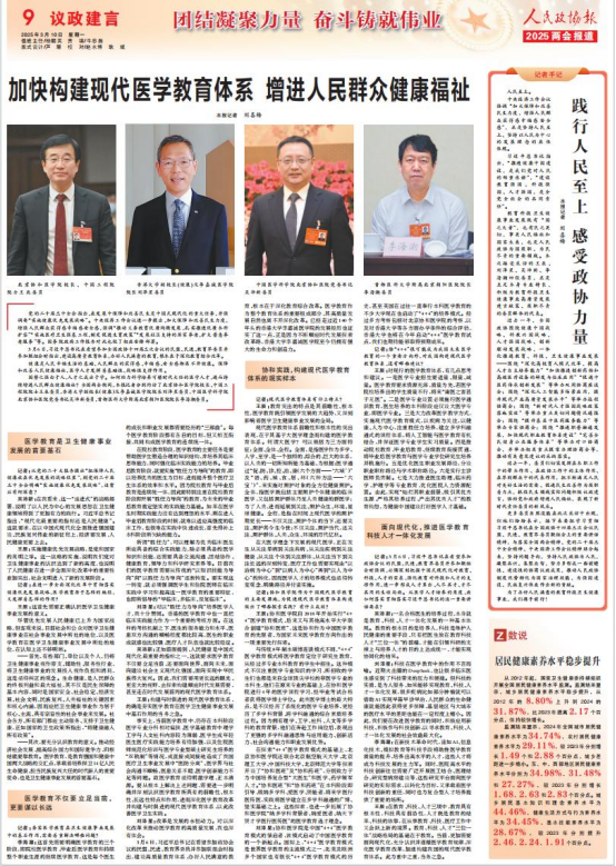国势之强由于人,人才之成出于学。如何助力科学培养可堪时代大任的医学人才,进而持续增进人民群众健康福祉?全国两会期间,本报记者分别约访了米乐mile官方网站校长、中国工程院院士王辰委员,香港大学副校长(健康)及李嘉诚医学院院长刘泽星委员,米乐mile官方网站北京协和医院党委书记吴沛新委员,首都医科大学附属北京朝阳医院院长李海潮委员。
