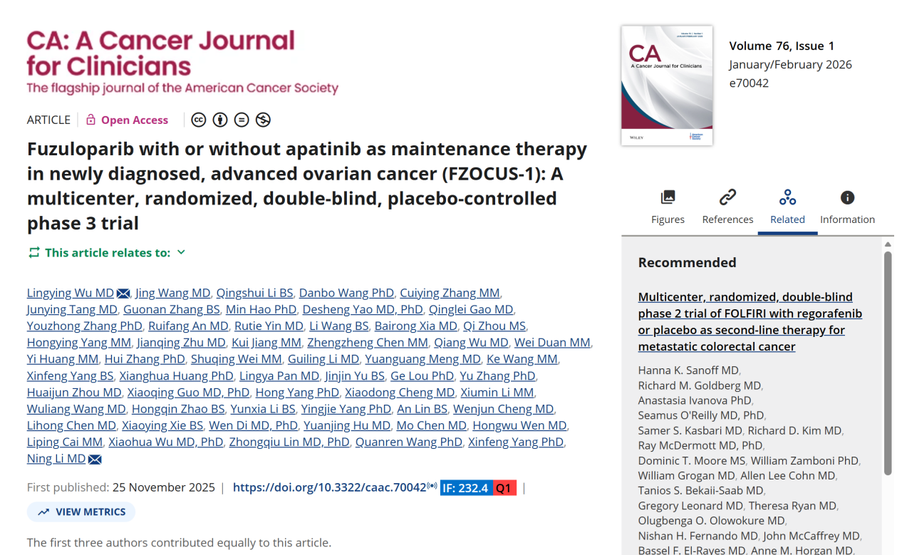 CA开年首刊发表米乐mile官方网站肿瘤医院妇科吴令英、李宁团队研究成果
