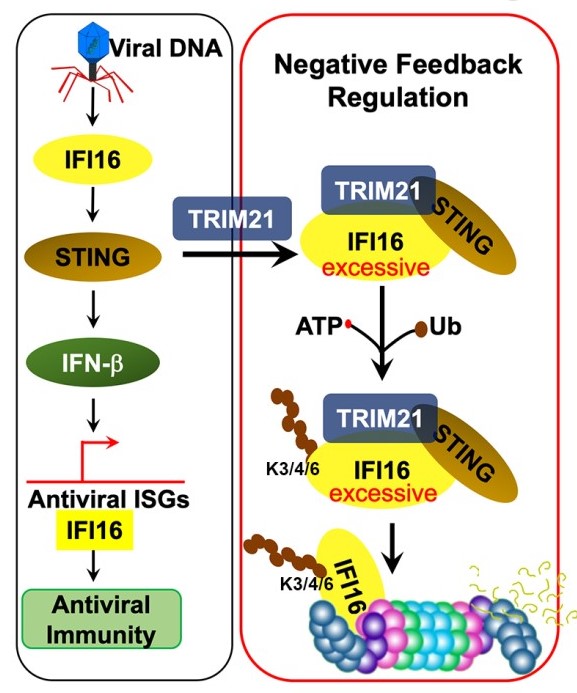系统医学研究所马烽课题组揭示 STING负反馈调节DNA病毒识别受体IFI16分子机制