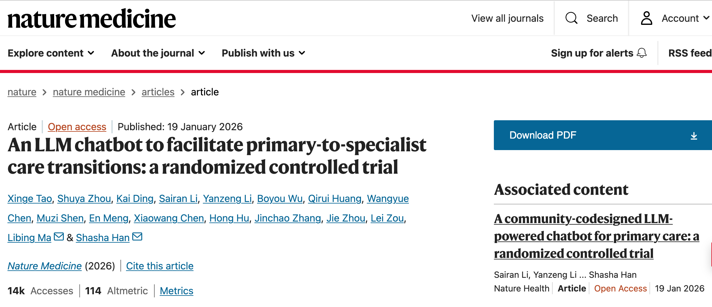一日双刊|群公学院韩莎莎团队在《Nature Medicine》与《Nature Health》发表医疗健康AI研究成果