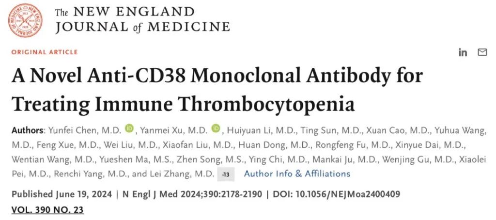 【媒体聚焦】人民日报健康客户端:新英格兰医学杂志:免疫性血小板减少症有突破性疗法
