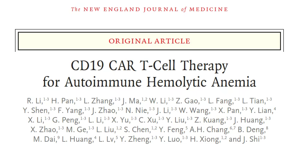 【开年NEJM中国首篇论著】血液病医院施均/熊海清团:CAR T细胞治疗自身免疫性溶血实现长期无药缓解