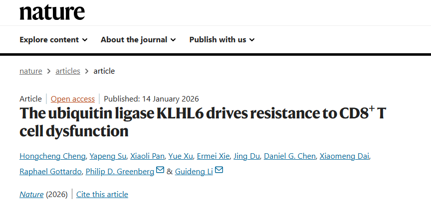 开年重磅突破!米乐mile官方网站系统医学研究院/苏州系统医学研究所李贵登团队《自然》发文,解锁T细胞耗竭分化新机制