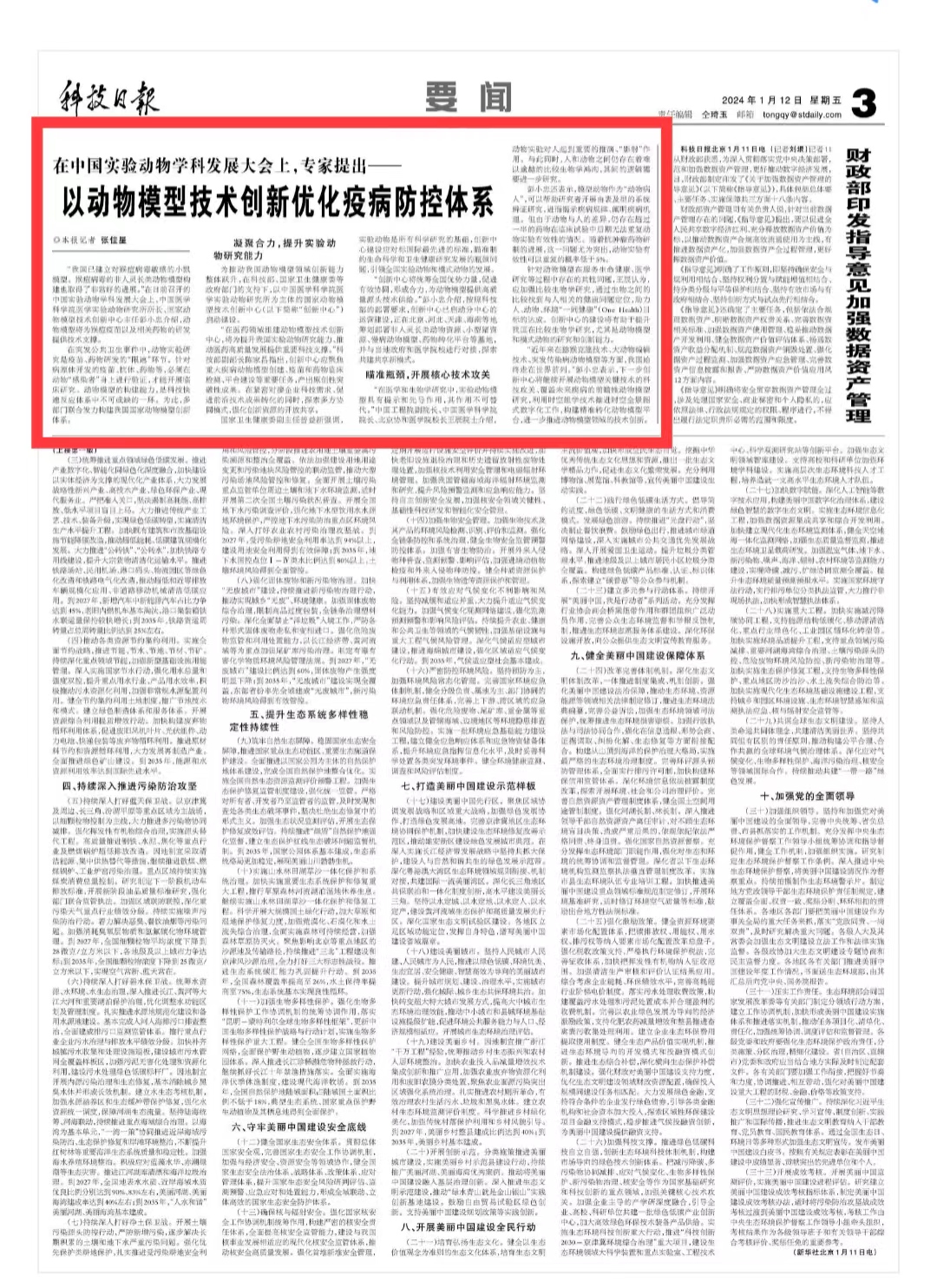 【媒体聚焦】科技日报——在中国实验动物学科发展大会上,专家提出——以动物模型技术创新优化疫病防控体系